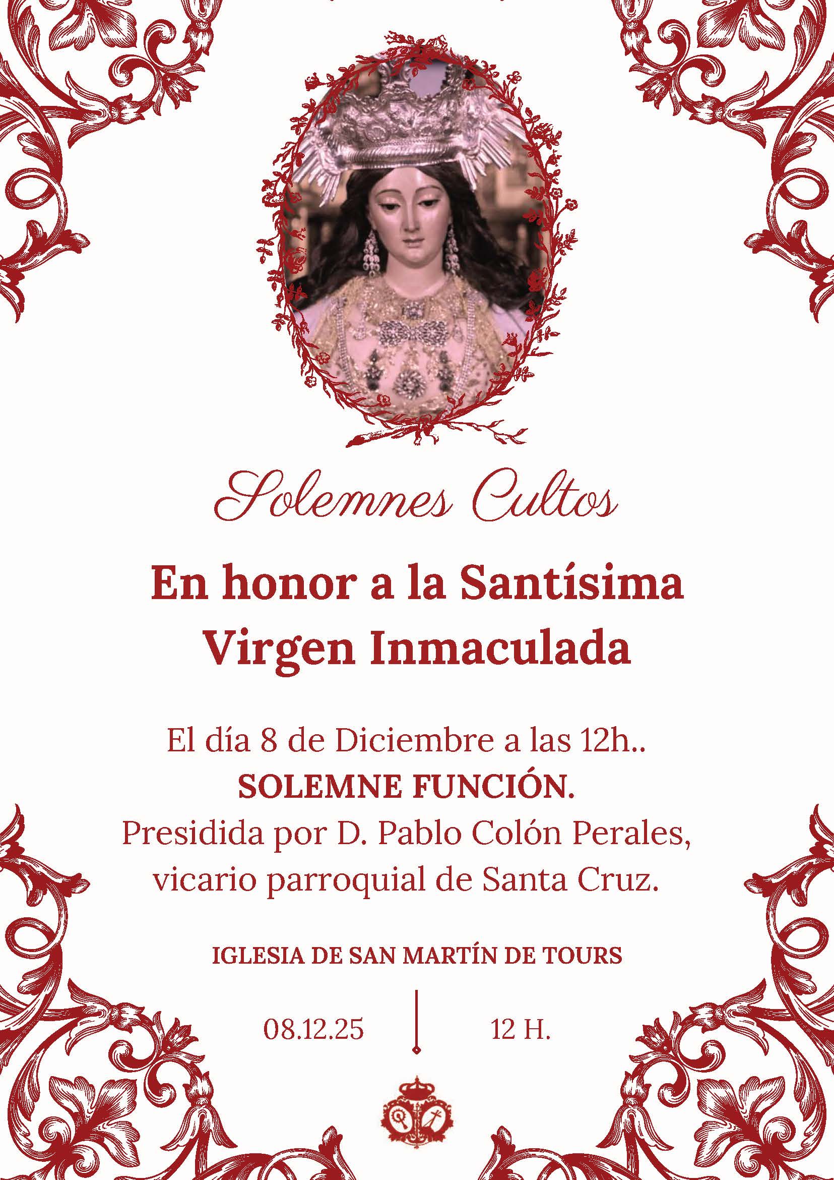 Solemnes Cultos en honor a la Santísima Virgen InmaculadaEl día 8 de Diciembre a las 12.00 horas, Solemne Función en la Iglesia de San Martín.Presidida por D. Pablo Colón Perales,…