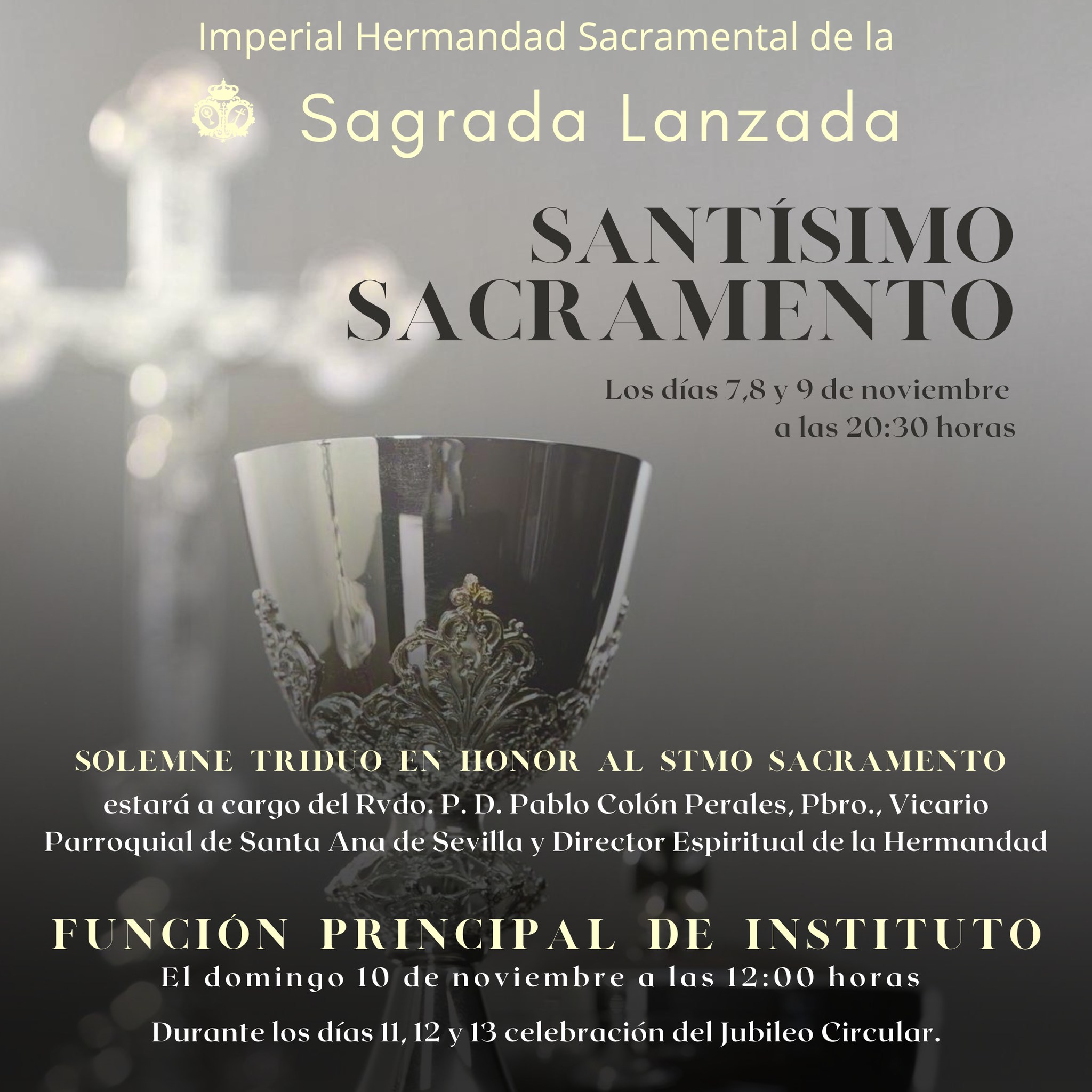 Durante los días 7, 8 y 9 de noviembre a las 20.30 horas, Solemne Triduo en honor al Santísimo Sacramento en la Iglesia de San Martín.