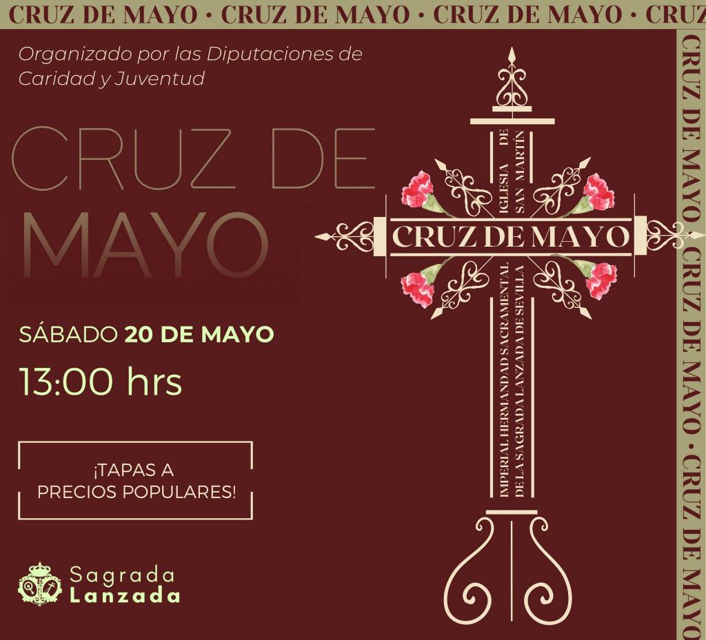 La Hermandad de la Sagrada Lanzada celebrará el sábado 20 de mayo de 2023 su tradicional Cruz de Mayo en el patio de la casa-hermandad. Será a partir de las 13.00 horas y está organizada por las Diputaciones de Juventud y Caridad para cuyos fines se destinará la recaudación.