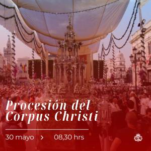 30 de mayo de 2024, Asistencia corporativa de la Hermandad a la procesión del Corpus Christi. Los hermanos que deseen acompañar a Jesús Sacramentado deberán estar a las 8:30 horas en el Patio de los Naranjos del Templo Metropolitano