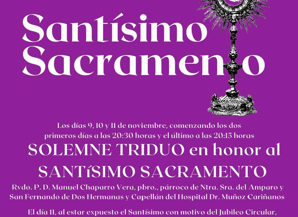 Durante los días 7, 8 y 9 de noviembre a las 20.30 horas, Solemne Triduo en honor al Santísimo Sacramento en la…